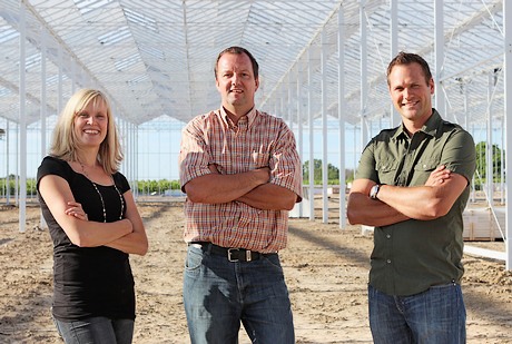 Jodi Roelands, Arie Alblas and Adrian Roelands during the construction of the greenhouse in July 2013.Increasing demand for quality