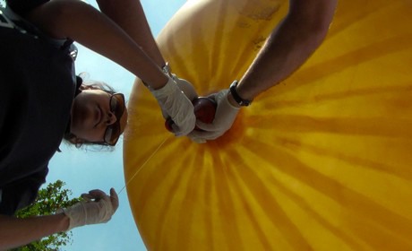 A weather balloon, filled with helium, brought the label and plant to an altitude of 35 km. The balloon was equipped with a a parachute, a GPS, and two high-performance cameras. Thanks to the parachute, the plant and label landed safely and the exact location could be determined by the GPS signal. The two cameras recorded the entire 90 minute trip of which they made this 3 minute video:
