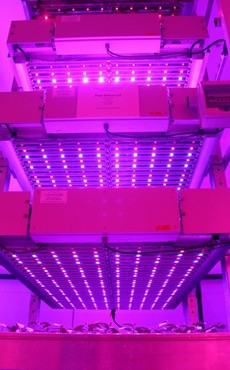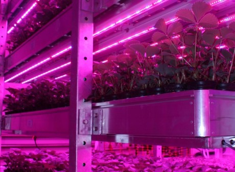 The 200 square meter LED-research facility is the result of a partnership with LED-supplier Phillips and greenhouse manufacturer Cambridge HOK. The primary aim is to deliver applied research and technology transfer to growers, using this applied R&D facility for multilayer cropping using LED lights.