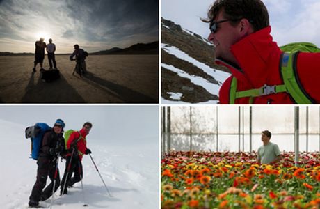 Anders Ludvigson’s work takes him to many different parts of the world where he often goes out walking to get to know the area and climate he is visiting. The helicopter seen in the film was only used to get to the Kebnekaise mountain station, from this point everybody was on foot. In California, a quadcopter was used for filming on the dry lake bed and inside the greenhouse.