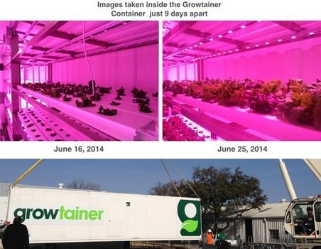 The Growtainers are customizable and stackable, mobile, modular and extremely user friendly. The Growtrollerâ„¢ control system can be remotely monitored and operated over the internet or on a smartphone and offers video and audio communication in real time. The benefits of the Growtainerâ„¢ container production are substantial including year round production, attention to food safety issues, a reduction in food miles, increased freshness and longer shelf life.