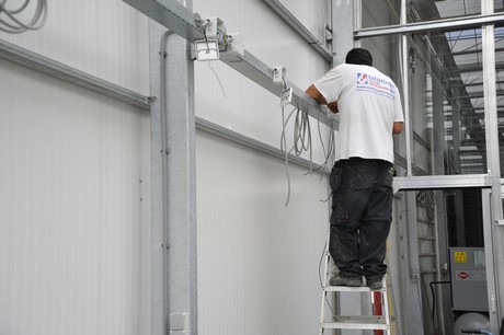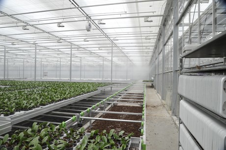 Plants brought in the new greenhouse under operating spray