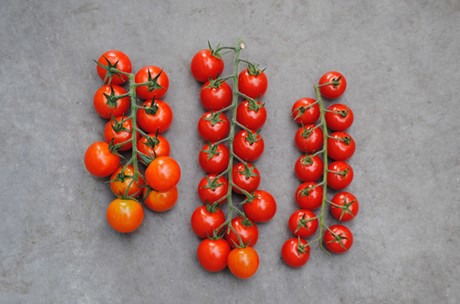 The development of the vine cherry is clearly visible. At the left side, the conventional segment. In the middle, the new segment and on the right side the premium variety.
