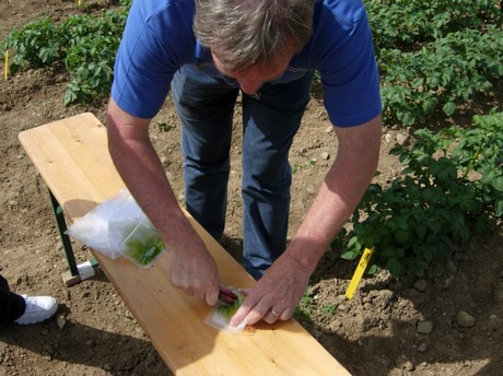Flashkits® (ImmunoStrip®) can help growers to detect easily different plant pathogens. This detection test is simple as it does not require special equipments or technical qualifications. It is composed of a plastic bag and strip. The sample is ground in the bag containing a specific extraction buffer, and a strip is then introduced vertically inside the bag. After 15-30 minutes the grower can read the results and take the corresponding decisions. If one line appears on the strip the test is negative, if two lines appear the test is considered positive for the pathogen tested.