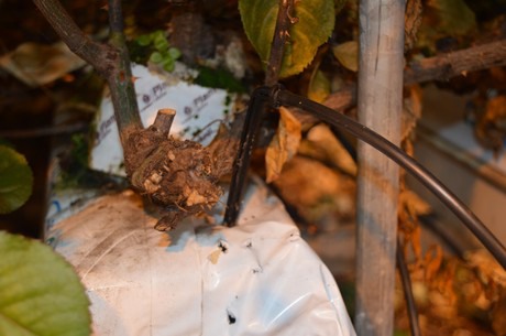 Finally, the roses are irrigated by a mechanism that injects the 'treated' water into the Rockwool.