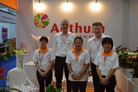 Wim Gijzen and Kasper Rietvelt and the Thai team from Anthura at the Horti Asia in Bangkok, Thailand.