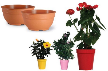 The Valencia Line in different colours. On the right hand a picture of how growers can use these pots in different colours.