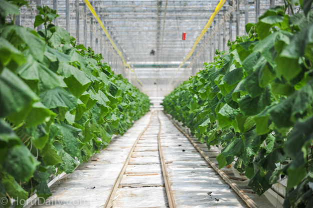 This is one of the two current greenhouses of W.Martens in Beamsville. The greenhouses were floral operations in the past. When Martens acquired them, he took all the benches out and prepared them for cucumber cultivation.
