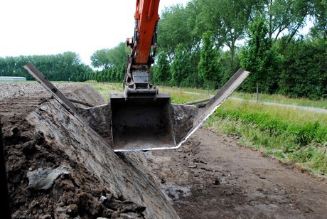 With a face of concentration, digger driver Marco is looking at the Ridderkerk clay soil where over the past few days, he has formed half a reservoir. The clay soil is difficult to work with: it is slippery to get hold of and then it really dries out, but for Marco, it's no problem. "The banks just need to be straight," he says. "One centimetre tolerance is really my max. If it is off by five centimetres, then you will see holes. We can't have that. And you can't just go back to fix it. It must be right first time."