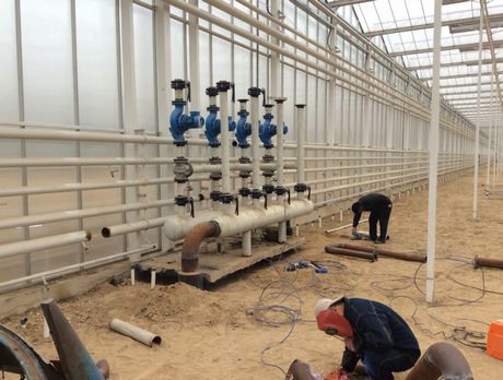 The entire greenhouse structure is built by Leffers and his building crew themselves. Most of the material comes from China. Inside the greenhouse everything is almost done; the heating pipes have all been welded and are ready to be placed. "We only need to complete the electric wiring. As soon as we have completed the final leveling of the floor we can bring in the double screen installations. The CO2 and irrigation is all done. A crew from JB Hydroponics will soon bring in their machines to manufacture and install the metal gutter canals. Furthermore, we are waiting for the other materials that need to be shipped from Holland; harvesting and pipe rail trolleys, UV-disinfection units, the high pressure fog system, water storage silos etcetera."