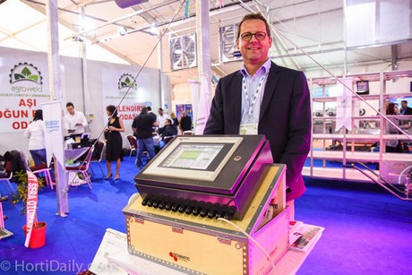 Morten Hjorth of Senmatic with the LCC4 Logic Climate Control at the booth of AgroWeld during the GrowTech Eurasia last week. The LCC4 is compatible wit the new FL100 LED fixtures of Senmatic.