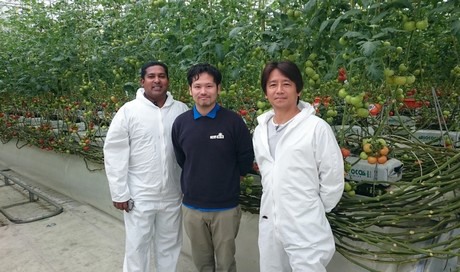 Shan Halamba, CEO of Riococo, Koshi Fujimaki, head grower and General Manager at Akeno Green Farm and Satoshii Harada, General Manager of Kagome's fresh produce division.