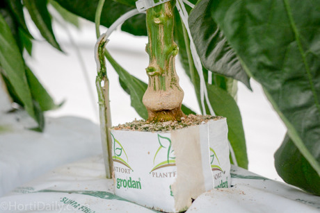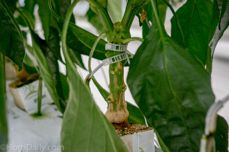 Grafting peppers requires a chance in plant density. Instead of using the traditional V-system, a third stem is common.