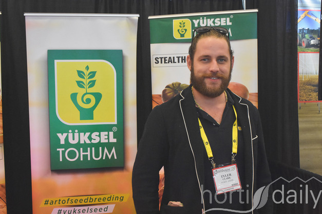 "We also came up with a yellow tomato, called 24 Karat", Tyler shows. The remarkably shaped tomato is one of the heirloom varieties Yuksel is known for, being offered in many colours. "There's also the Quesimodo, Stealth and Tourmaline, which we've had for a couple of years. The heat resistance is remarkable and therefore it's an important collection to growers."