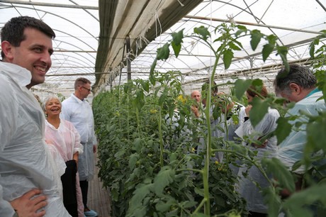 Everyone then jumped on a bus for a short 15 minute drive to visit PCA members Jimmy & Lucy Azzopardi and their four children’s medium tech tomato farm in Londonderry.