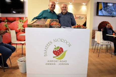 The Jordanian Exporters en Producers Association's stand smelled completely of strawberries. These were from Yacoub Miguel and Ans Bahou of the Jordanian company, Basateen Alordon.