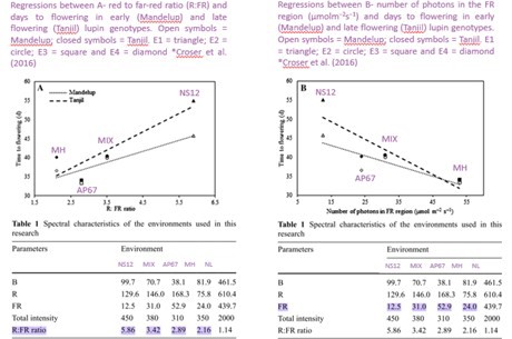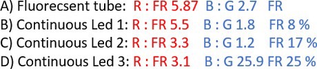 These forms directly affect the photomorphogenesis, like elongation, germination and flowering of plants (Franklin and Whitelam 2005). This is a good example that it is not only the percentage amount of far-red and red that matters in the continuous LED light spectrum but the relationship between them and the photon load the spectrum produces (Croser at al. 2016).