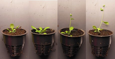 Plants shown above are 27 days old Arabidopsis thaliana seedlings grown under different light treatments each of 40 µmol/m-2/s-1.