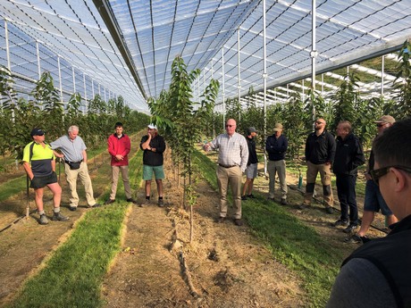 Clyde Orchards owners Kevin and Raymond Paulin told visitors that their recent investment into Cravo retractable roof technology will allow them to harvest several weeks earlier and increase A-grade pack out without any negative impact on fruit firmness.