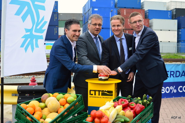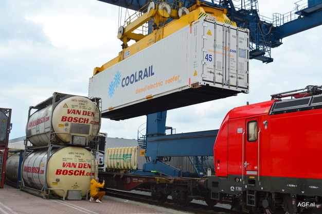 It’s as if the location was deliberately chosen: the first CoolRail left from the oil port of Pernis, the Netherlands to Valencia. The 42 reefer containers on the train were loaded with empty crates of Euro Pool System, the initiator of this unique project, which wants to reduce CO2 emissions with this type of intermodal transport.