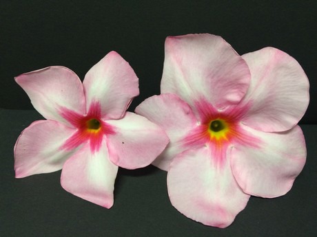 An example of chromosome doubling. Left the original diploid, right the doubled tetraploid variety with larger flower.