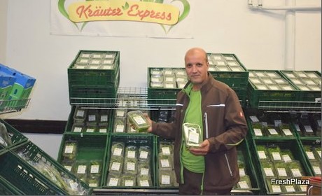 Ahmed Bouklata markets its cut herbs under the own brand Kräuter Express directly at the wholesale market booth.