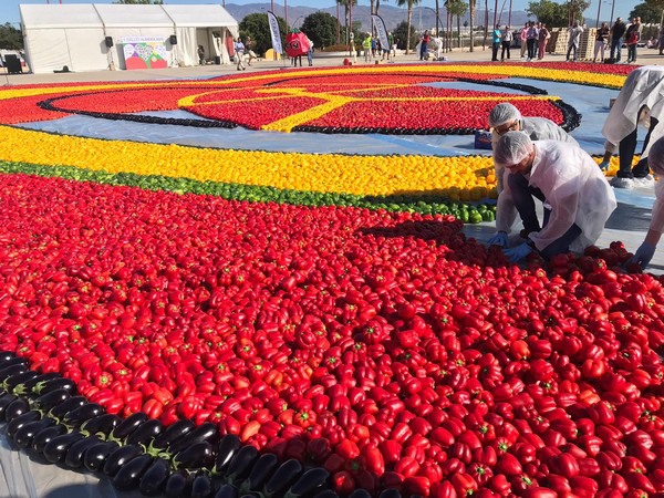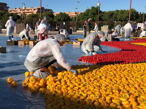 To do this, some 25 workers of the company have been placing more than 23 tons of tomatoes, peppers, eggplant, pumpkins and zucchini on the ground to form the healthiest mosaic in the world. Around 5 hours have been necessary to beat India, which until now held the record with a 480 m² mosaic.