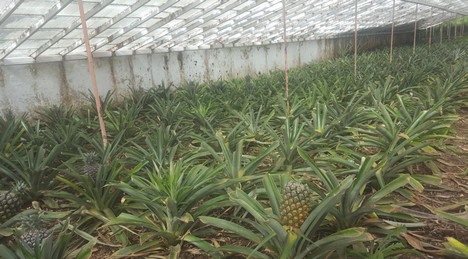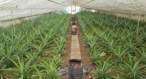 In total, the cultivation cycle of these pineapple takes eighteen to twenty-four months. It all starts with sprouts of plants which have already borne fruit. After breeding, the plant is placed in the greenhouse. The plants are growing on beds which are enriched with vegetable organic material and equipped with an irrigation system.