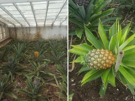 After 18 months, it is time to harvest the pineapples. The plants will be kept in the greenhouse for some weeks after.