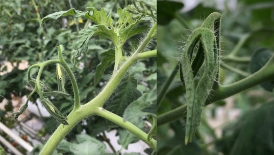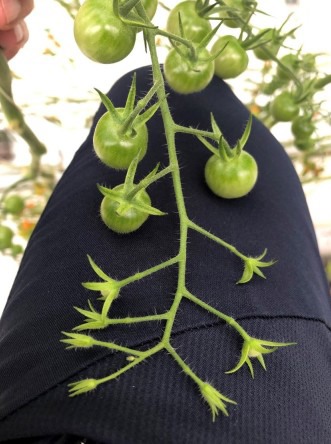 The setting of tomato flowers is an extremely important process. Growers will be able to recognize how the quality of tomatoes and the fruit size will be at harvesting when they look at the early stage of fruit development. If the setting is good, as is pictured above, the fruit is similar in size and properly sequenced.