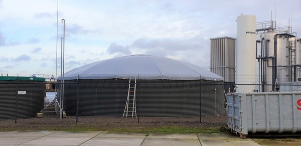 There a BUWADome, the name for the lightweight silo cover with an aluminum frame and a customized PVC tarpaulin, was mounted on an existing silo. Buwatec did the job together with co-inventor Albers Alligator and Bervoets Montage.