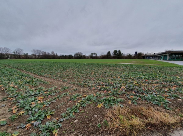 Exterior photos of Switzerland’s Agri & Co Innovation Center, including a field for future BVT trials of its natural precision agriculture system