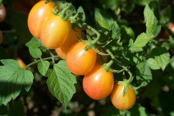 The Rutgers New Jersey Agricultural Experiment Station (NJAES) tomato breeding team that developed the ‘Rutgers 250’ tomato, has created a new and unique bicolor grape tomato, ‘Scarlet Sunrise‘. Developed by traditional (non-GMO) plant breeding methods, this cultivar has firm, crack-resistant red/yellow fruit, and – representative of New Jersey’s legacy of tasty tomatoes – an intense sweet flavor balanced by moderate acidity. The indeterminate plants are high yielding, with mid-late season fruit maturity.