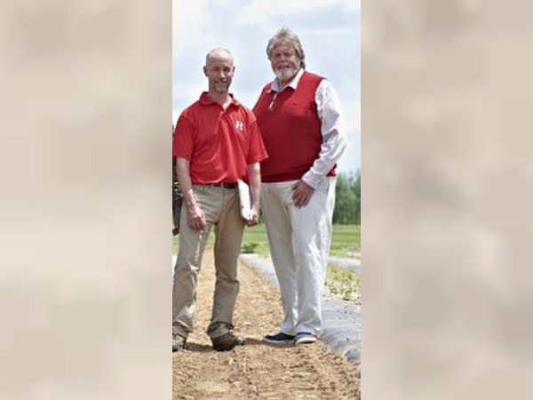 Rutgers 250 tomato breeders Pete Nitzsche (l) and Tom Orton developed the Scarlet Sunrise bicolor grape tomato. Photo courtesy of NJ Monthly