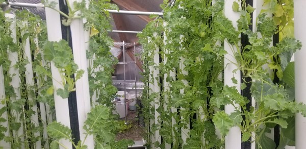 Within the greenhouse is the hydroponic system: a collection of water pumping towers designed to mechanically provide plants with water and nutrients without the need for soil. The towers, standing at 5 ft tall, grow fruits and vegetables vertically, allowing for up to 3 times more output than traditional methods while using 20 times less water due to its water recycling capabilities, according to TJ. All of Green Iglu's growing systems come with what they call a ‘SmartDome Digital Platform’. This is a fully automated monitoring system, including data collection and adjustment capabilities. The Growing Dome also incorporates soil-based grow boxes to grow nutrient-rich vegetables such as potatoes, carrots, and onions.