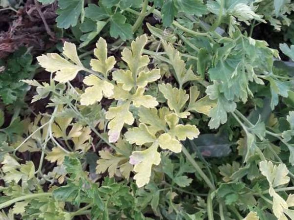 Figure 1: Nanovirus-infected parsley (sample 40Ba) showing stunting and general yellowing collected from a farm in the Kerman province of Iran.