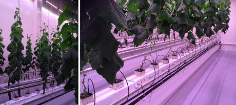 In cucumbers, the various cultivation factors have to be well-adjusted to each other. They did find a spectrum that works well, which was 5 percent blue light, 9 percent green and white, 75 percent red and 11 far-red. In the eggplant trials, treatments that included far-red light flowered earlier, and produced more.