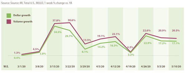 Source: IRI, Total US, MULO, % growth vs. year ago week ending May 10, 2020