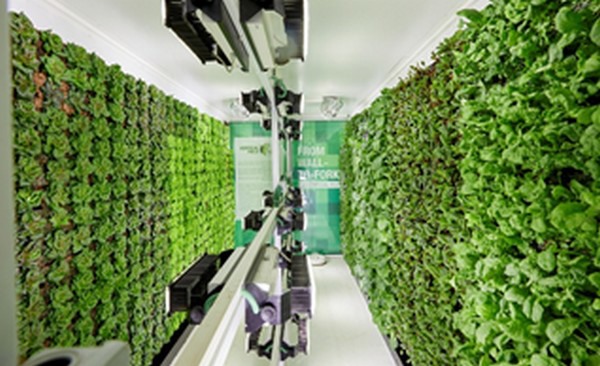 An alternative to the living wall is Vertical Field’s Vertical Farm, which can be placed in either a 20-ft or 40-ft. container equipped with advanced sensors that provide a controlled environment. This technology constantly monitors, irrigates, and fertilizes crops throughout every growth stage. Healthy, high-quality fruits and vegetables flourish in soil beds that contain a proprietary mix of minerals and nutrients.