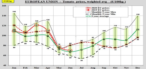 Prices are sometimes even below cost level, just like in Belgium where in week 27 (one week further than the EU figures) the middle price in individual tomatoes was 33 euro cents and in truss 28 euro cents.