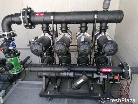 "It is a modular system equipped with a micro-sim and peripheral field units that can manage up to 48 valves, 8 fertilizers and agitators via radio/wireless applications. IrriFarm, distributed exclusively in Italy by Netafim under the Netafarm brand, is ideal for all crops: citrus fruit, strawberries, peaches, apricots, kiwifruit and much more. It is a high-precision system to manage irrigation and fertigation, a way to monitor everything that happens with the possibility to intervene swiftly without the need for field operators (Above right: a complete IrriFarm fertigation system).