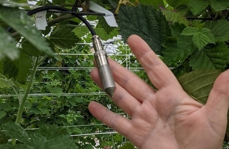 Thermo-hygrometer installed among the plants