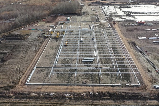 "As the construction partner, we have not been idle, because the steel construction of the warehouse is already well underway. It is now over halfway. The heating contractor in our subcontractor, JV (Voshol), has started laying the transport pipes," the Havecon team shares. Foundation of the greenhouse is to be finished within a month - which is also why the containers are in high demand: they're mainly filled up with foundation equipment!
