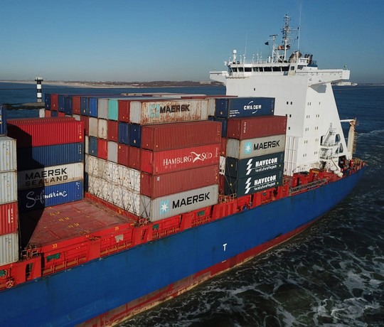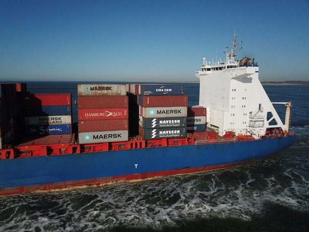 No, there's not another boat stuck in a canal. On the contrary, this one is on a stroll. And it should be: as you can see it contains the containers of Havecon Horticultural Projects and these are much needed in the USA and Canada.