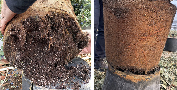 "An example of why drainage and oxygen uptake are so important. Plantlogic's patented design keeps the center of the root mass full of oxygen and drainage on the edges with a minimal wet zone," says Christian. "Drainage has been optimized in our pots that results in consistent and uniform rootzone conditions."