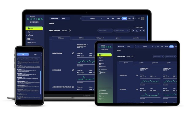 The HortOS Grower module presents crop, climate, and cultivation data clearly in the form of handy summaries that provide direct insight into the performance of multiple crops and multiple locations. This information is also displayed in the right context every time, and compared to pre-set cultivation plans and the relevant targets. This smart platform also keeps a close watch on the progress of the crop and sends notifications or alerts to the crop manager when necessary.