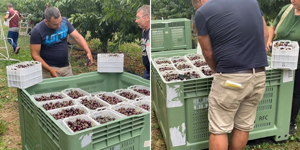 The system registers that the relevant employee has picked a container. Once the pallet's full, its label is scanned. And the grower can immediately see that a pallet of cherries has been picked. As well as who did it and where they were working. And how many kg per hour each laborer picked.