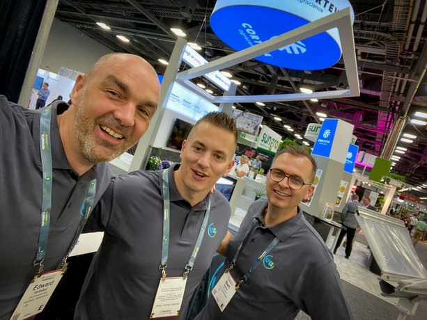The Svensson team of course shows the new ClimaFlow! This solution combines Hinova’s VentilationJet System, and Svensson’s advisory services, Climate House. In the photo Matt Bonavita and Robert Hanifin. Not to be missed on the photo in the photo are Simon de Boer with Schoneveld Breeding and Ton Habraken with Ludvig Svensson.