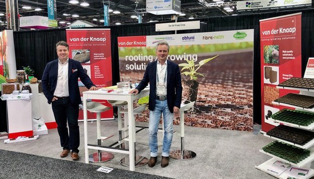 Ton Versteeg of Bom Group with Casey Jansen sr and his family with Holland Greenhouses. As it shows, Ton has some busy days at the show. "Everybody's happy to be back at a show for the first time since the pandemic started," he says.