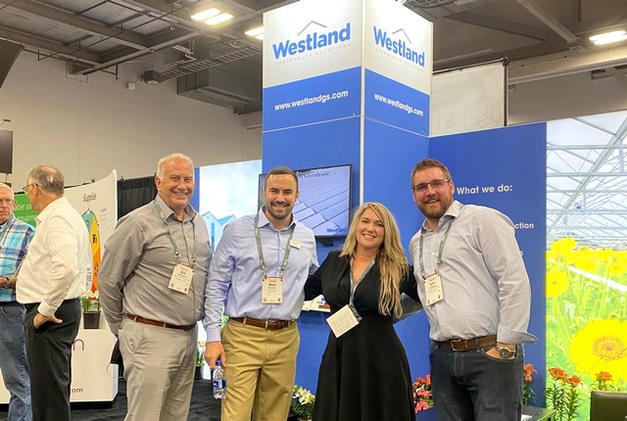 Tyler Rodrigue with Westland Greenhouse (right) is accompanied by Bill Whitakker with Oreon, Matt Bonavita with Svensson and Julie Vijverberg with G&V Construction